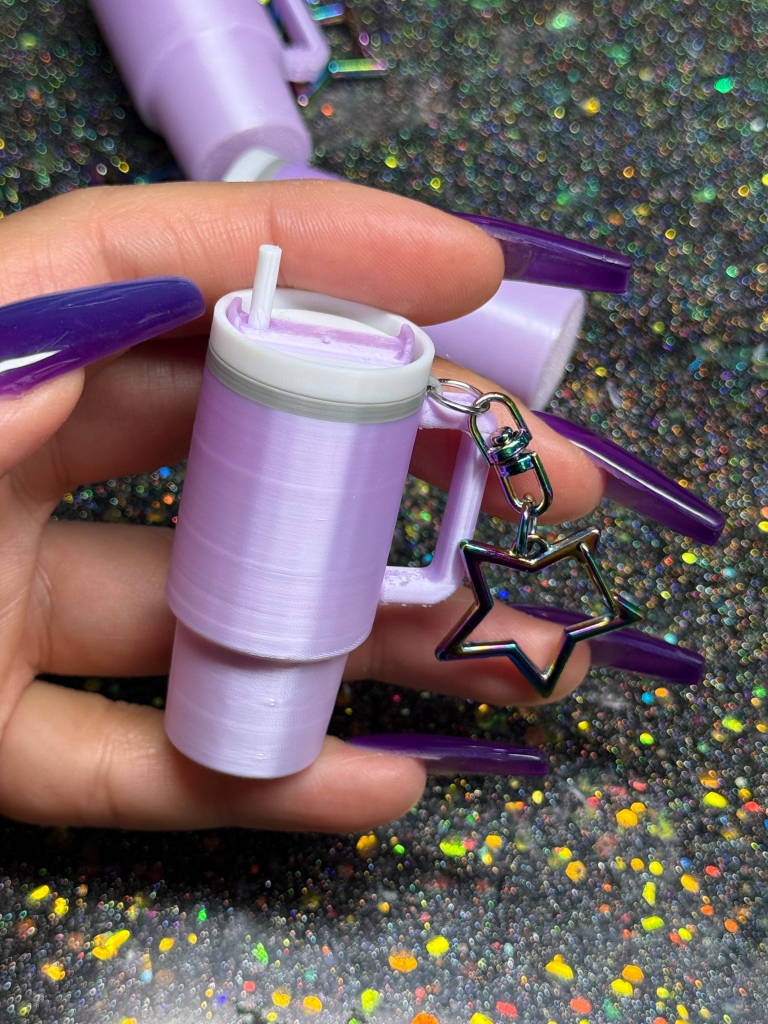 Mini tumbler fidget clicker keychain.