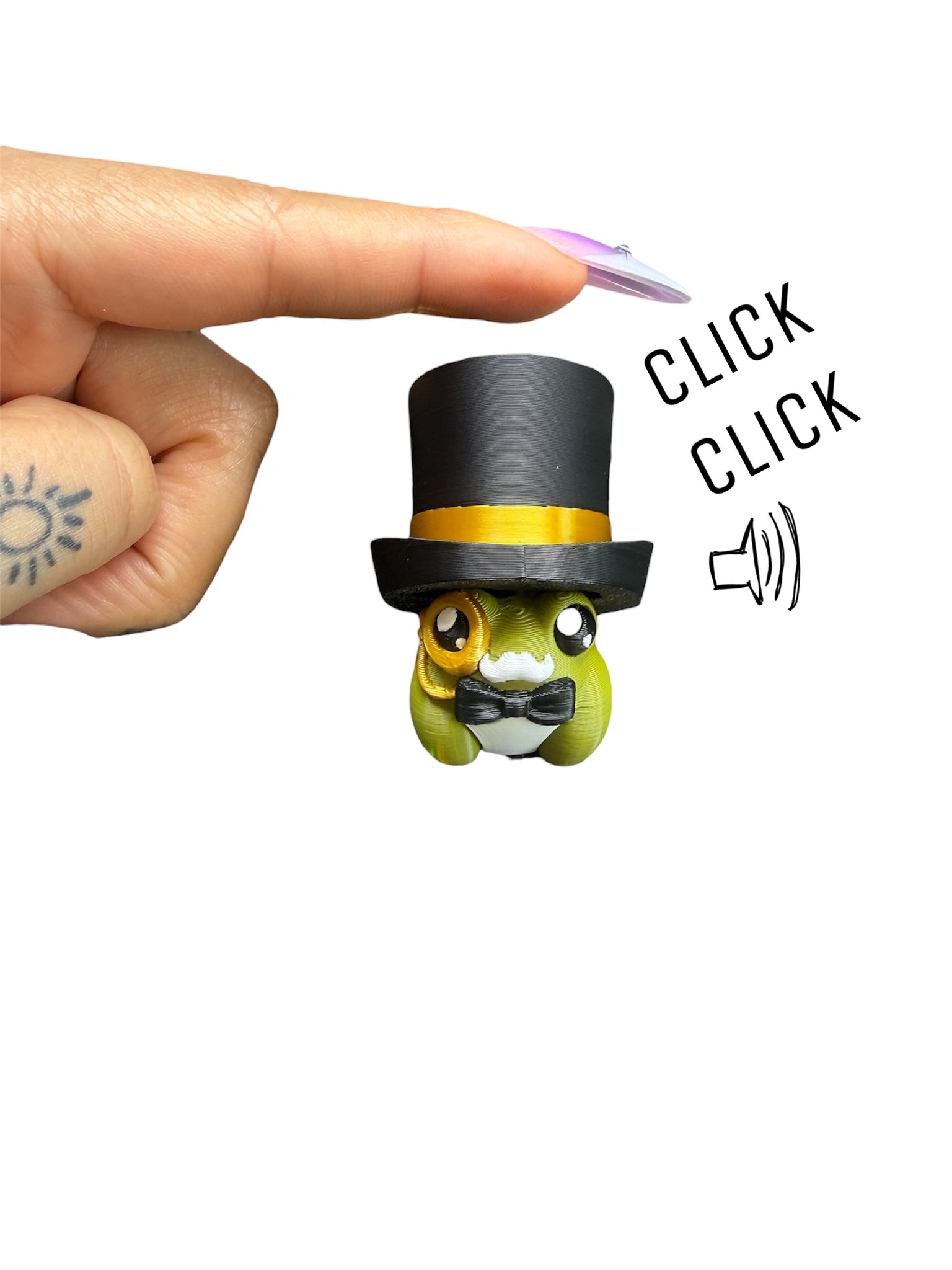 This listing is for one fidget toy, 3-D printed clicker keychain. Frog with top hat